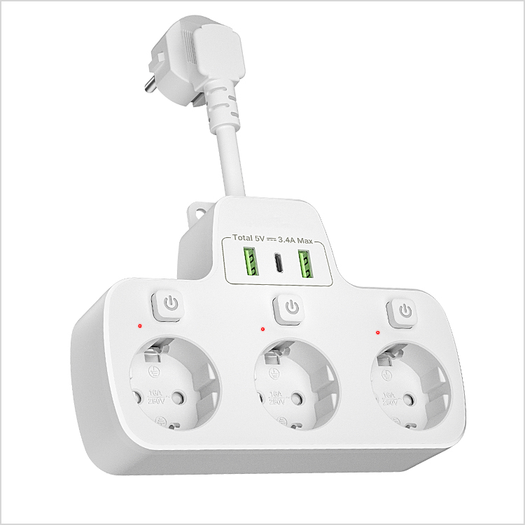 2*USB+2*Type-C, PD 20W + QC20 18W, 3AC 独立分控多功能排插