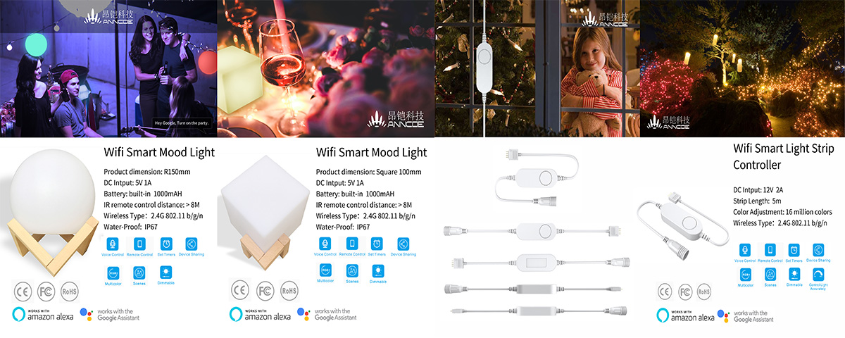 Company's new smart atmosphere lights, smart light controller, smart socket products fully support the TmallGenie, come and taste it!